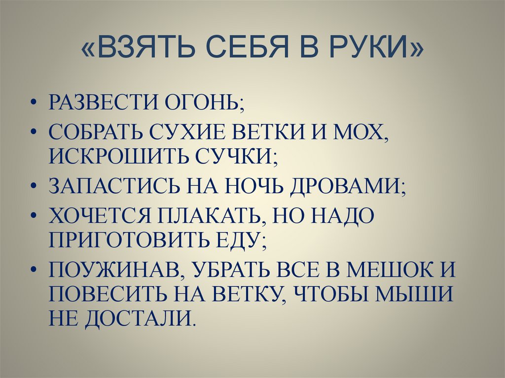 «ВЗЯТЬ СЕБЯ В РУКИ»• РАЗВЕСТИ ОГОНЬ;