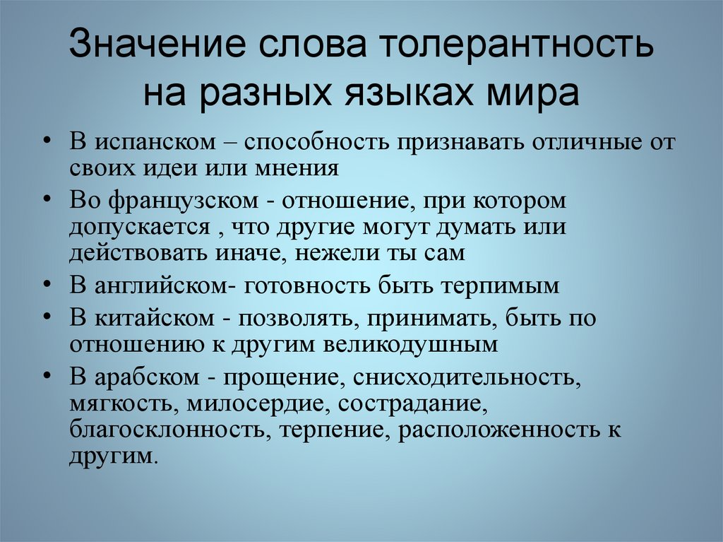 • Толерантность – терпимость,снисходительность к кому- или чемулибо.