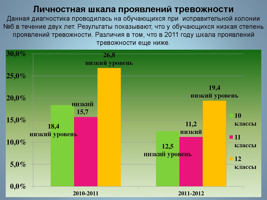 Личностная шкала проявлений тревожностиДанная диагностика проводилась на обучающихся при исправительной колонии