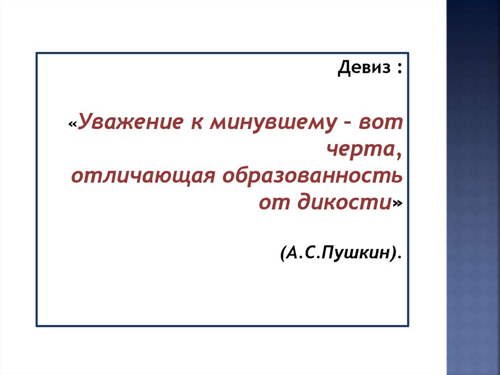 Девиз :«Уважение