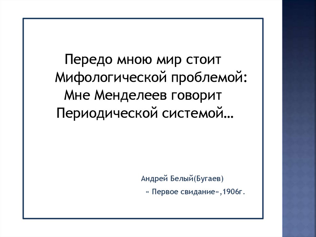 Передо мною мир стоитМифологической проблемой: