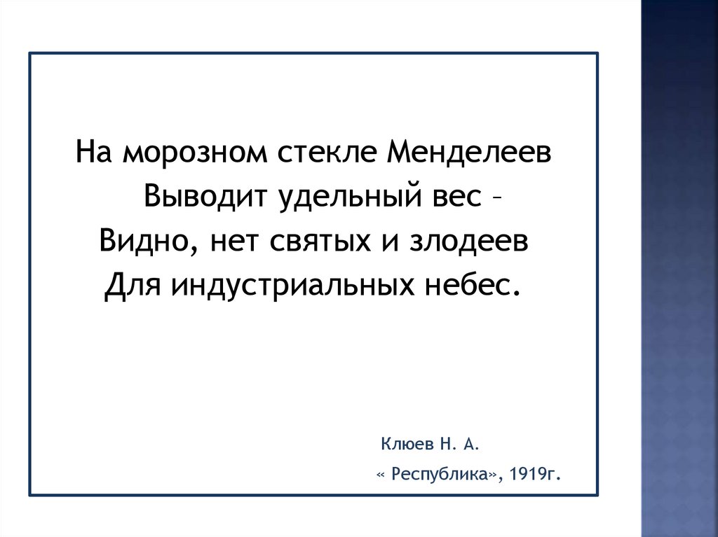 На морозном стекле МенделеевВыводит удельный вес –