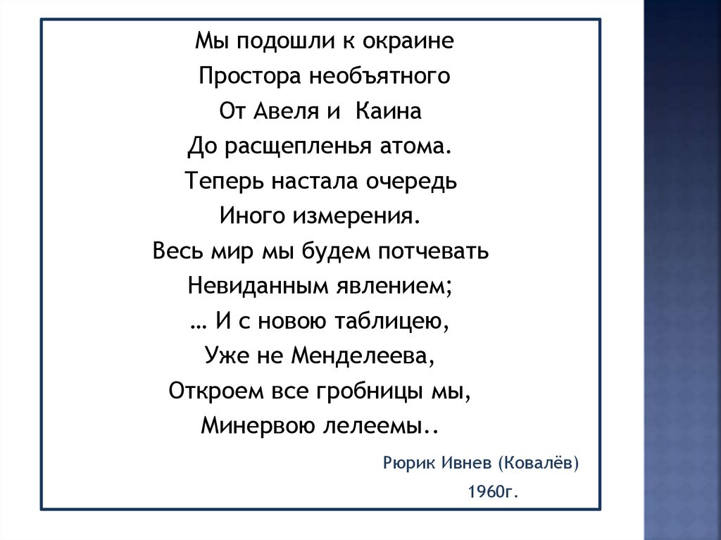 Мы подошли к окраинеПростора необъятного