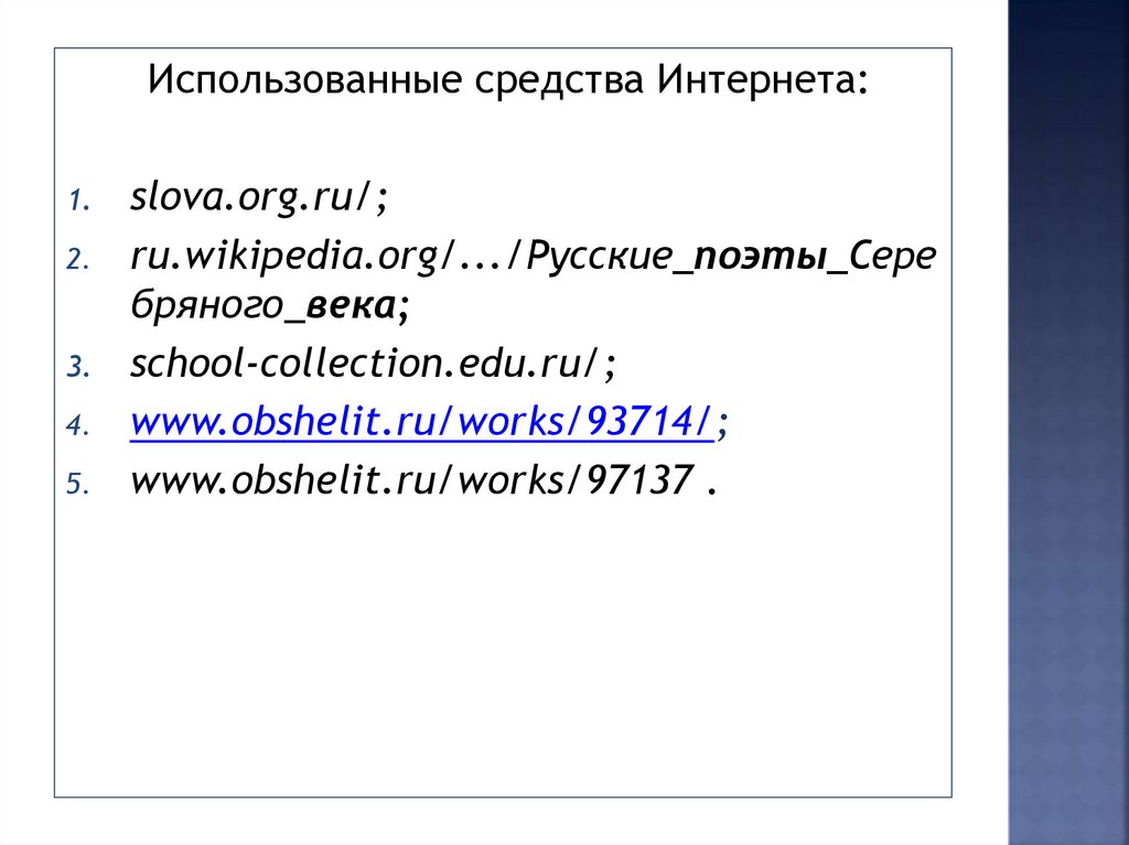 Использованные средства Интернета:1.