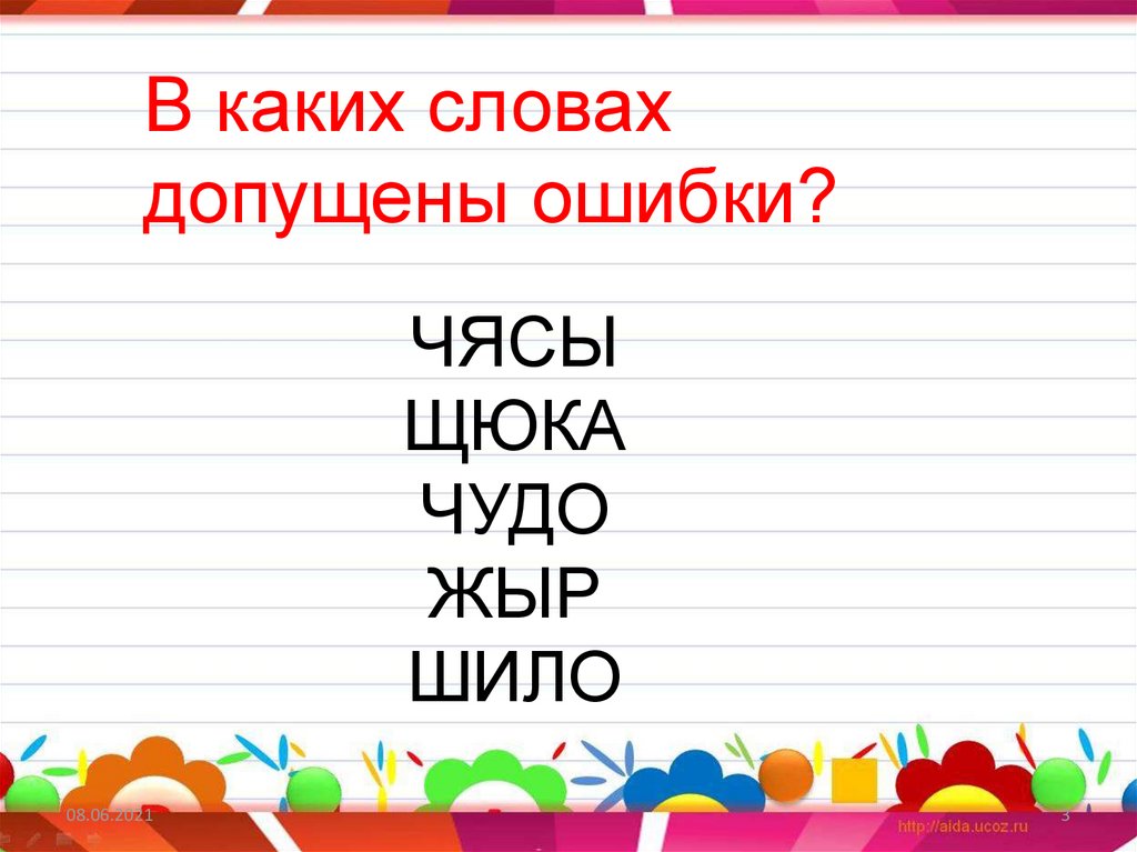 Урок русского языка ЖИ–ШИ ЧА-ЩА ЧУ-ЩУ