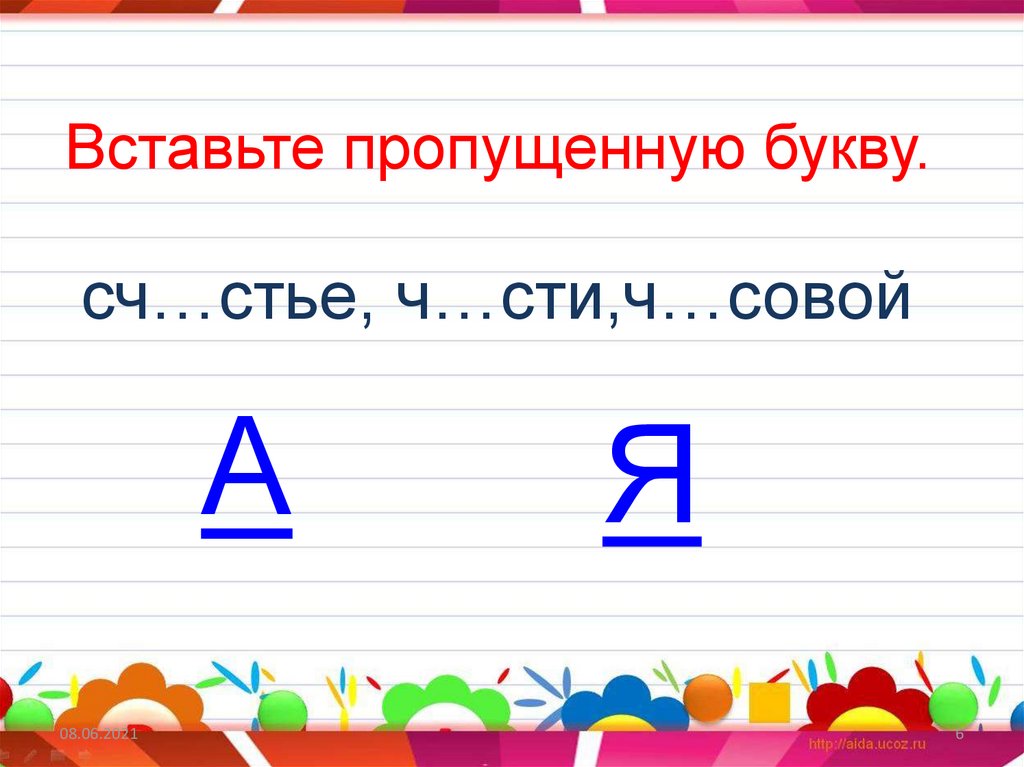 Вставьте пропущенную букву.сч…стье, ч…сти,ч…совой