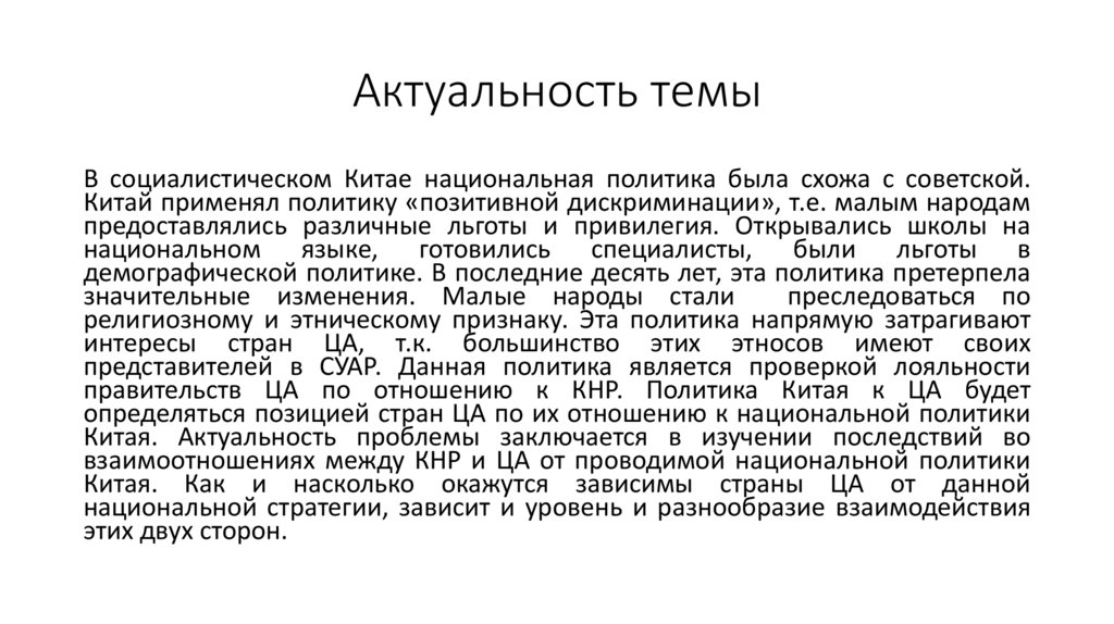 Актуальность темыВ социалистическом Китае национальная политика была схожа с советской.