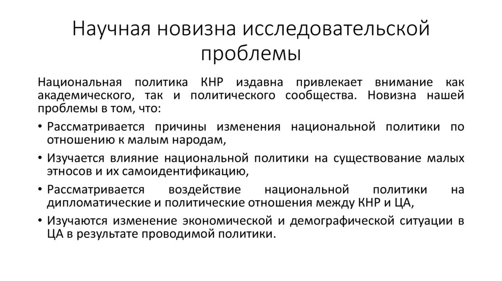 Научная новизна исследовательскойпроблемы