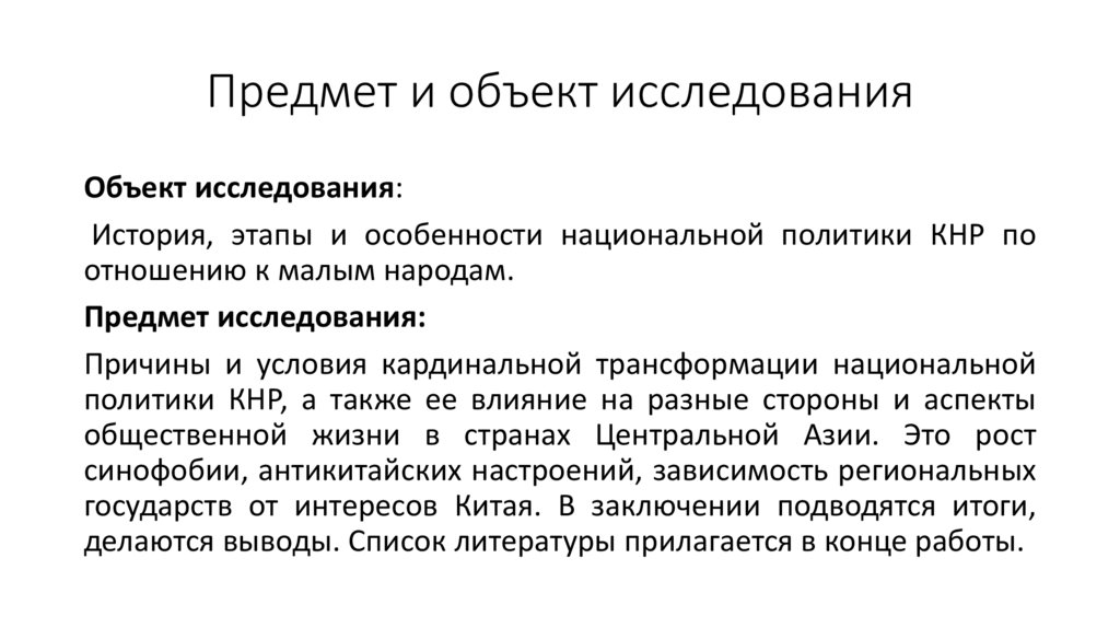 Предмет и объект исследованияОбъект исследования: