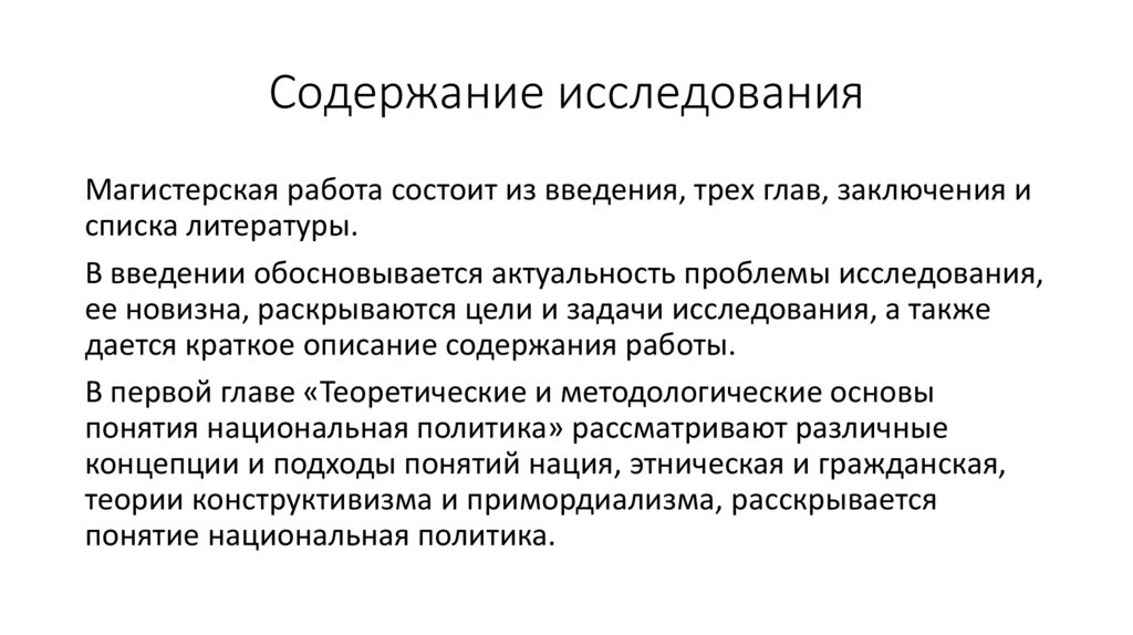 Содержание исследованияМагистерская работа состоит из введения, трех глав, заключения и