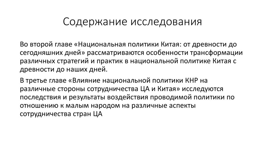 Содержание исследованияВо второй главе «Национальная политики Китая: от древности до
