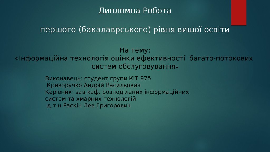 Дипломна Роботапершого (бакалаврського) рівня вищої освіти