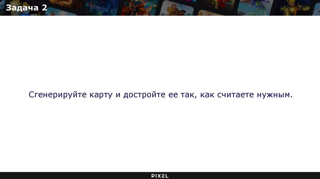 Задача 2Сгенерируйте карту и достройте ее так, как считаете нужным.