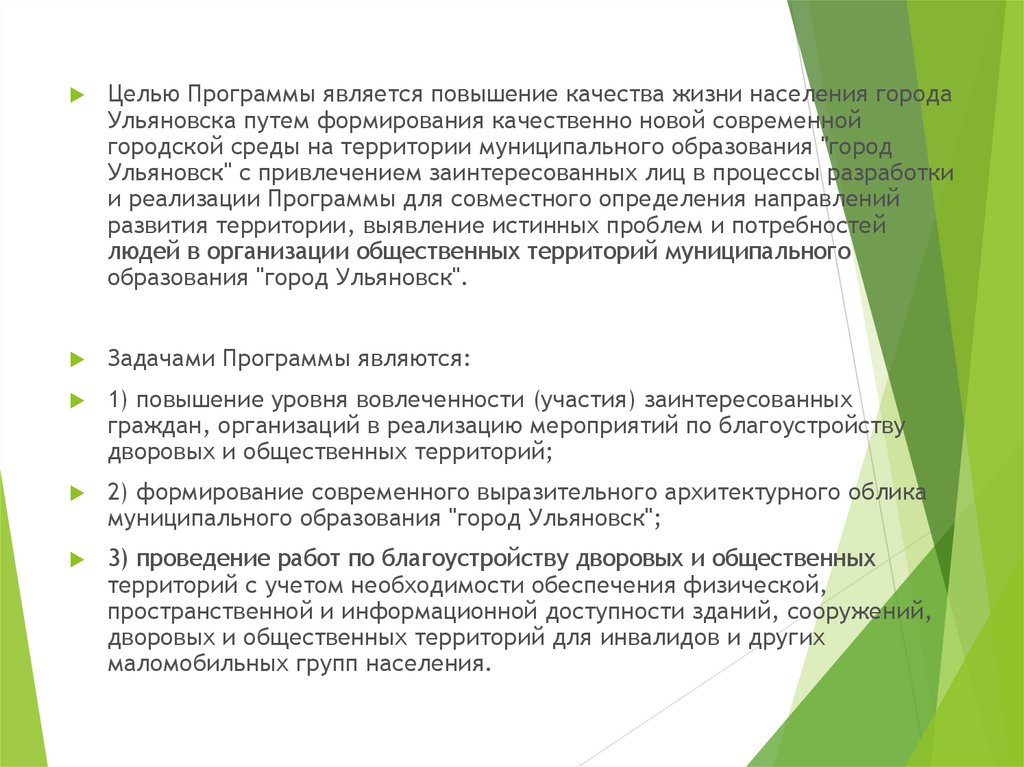 Целью Программы является повышение качества жизни населения городаУльяновска путем формирования качественно новой современной