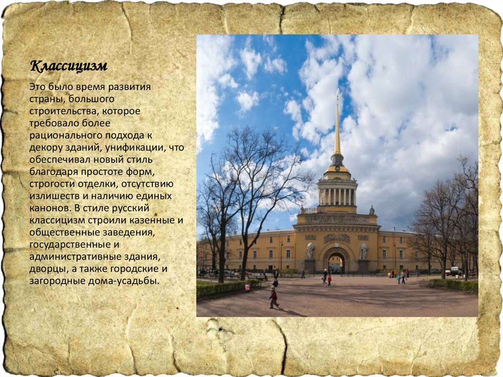 КлассицизмЭто было время развития