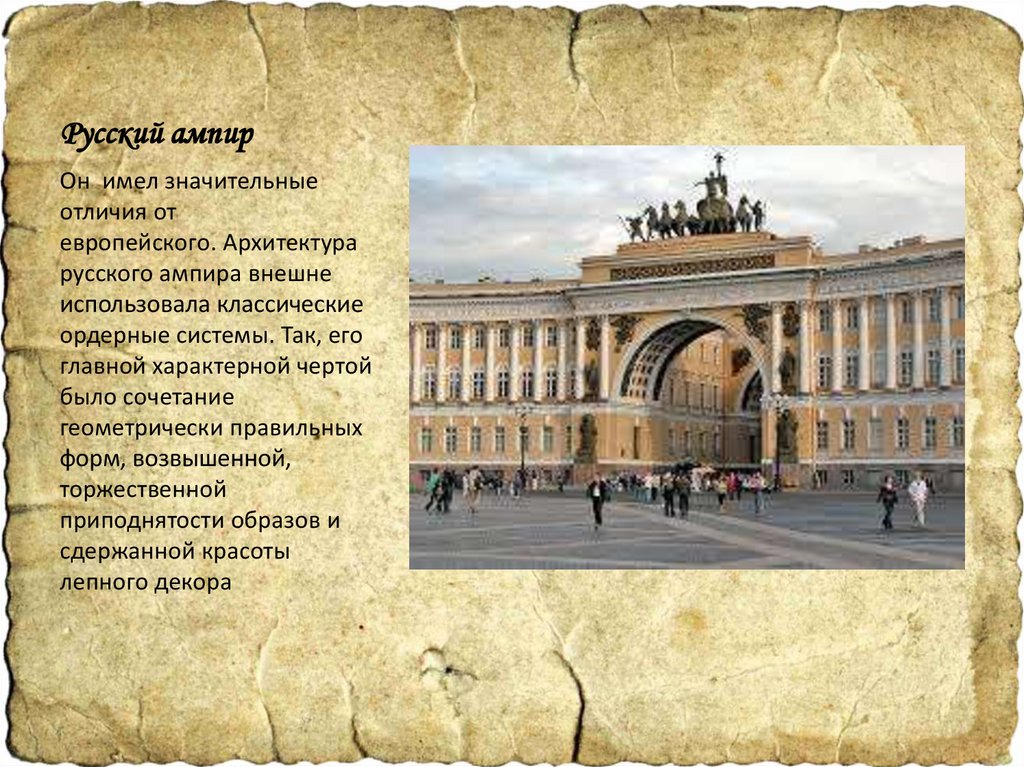 Русский ампирОн имел значительные