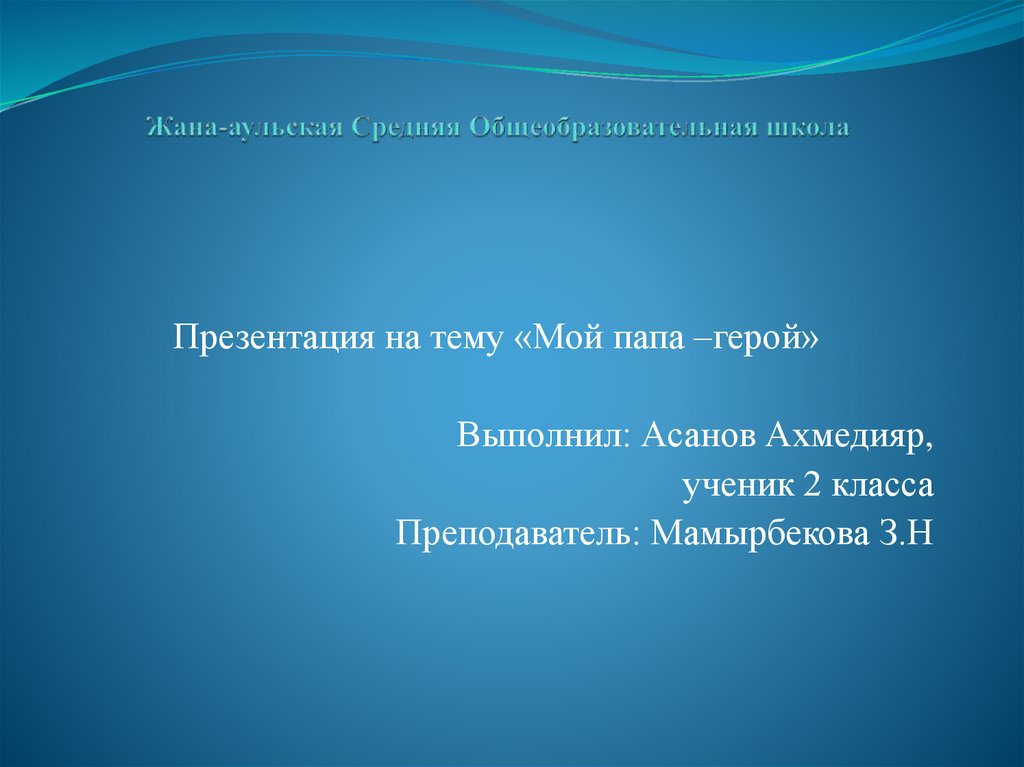 Презентация на тему «Мой папа –герой»Выполнил: Асанов Ахмедияр,