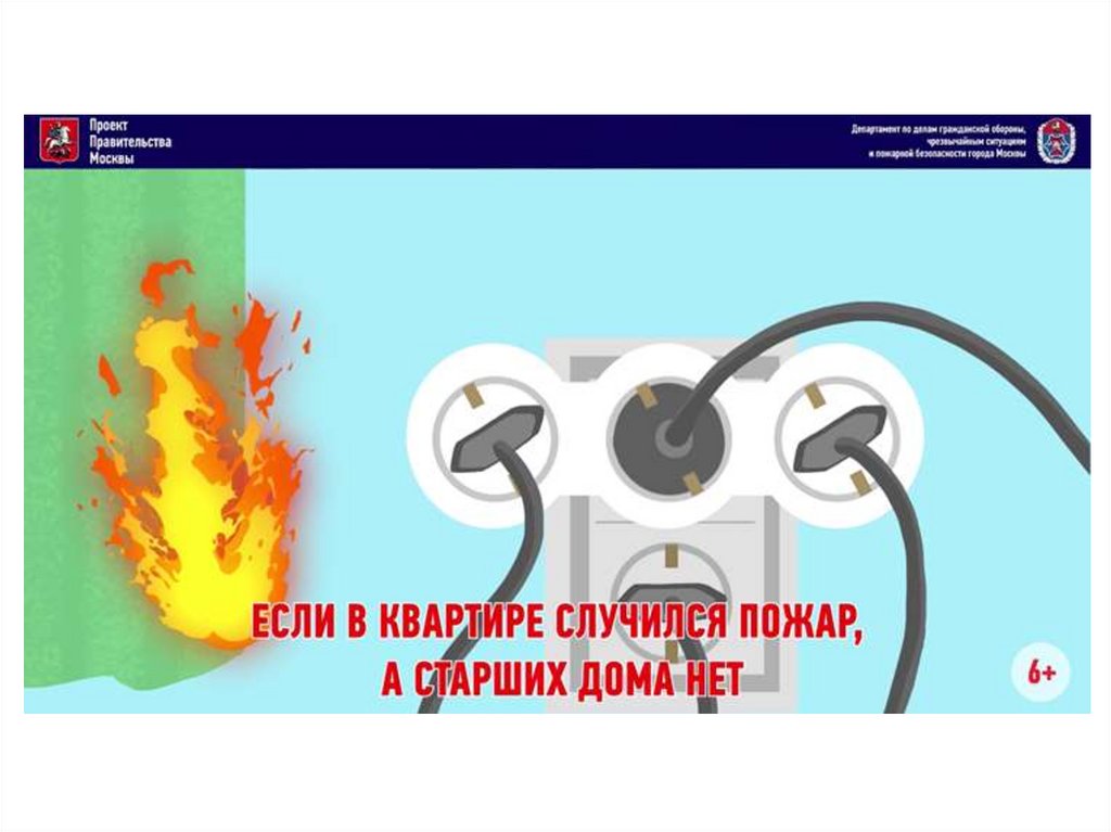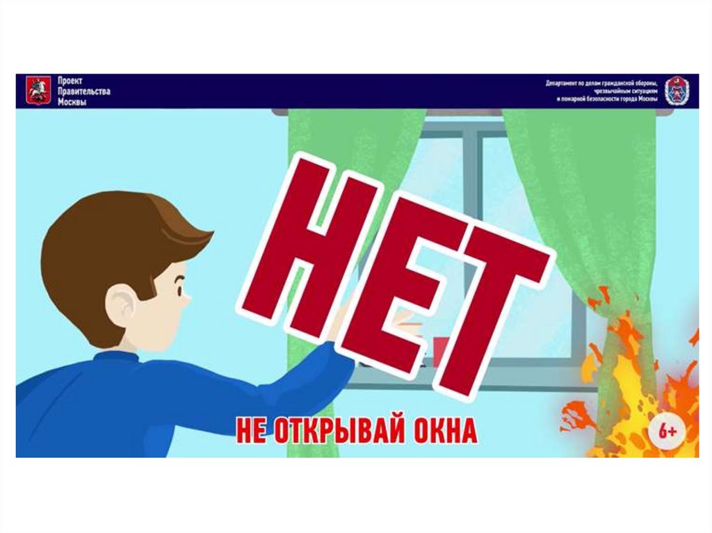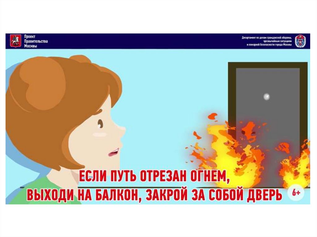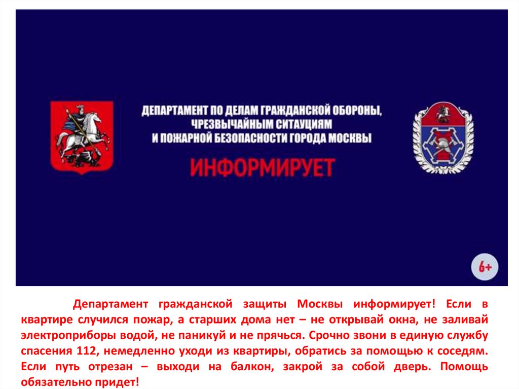 Департамент гражданской защиты Москвы информирует! Если вквартире случился пожар, а старших дома нет – не открывай окна, не заливай