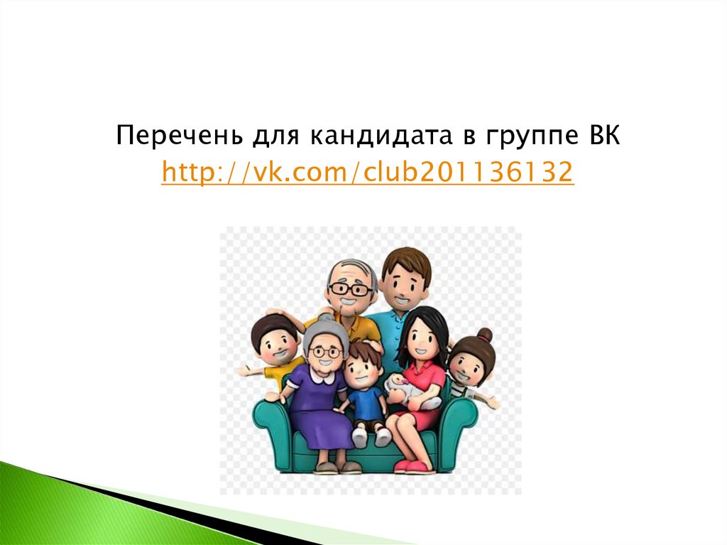 Перечень для кандидата в группе ВКhttp://vk.com/club201136132