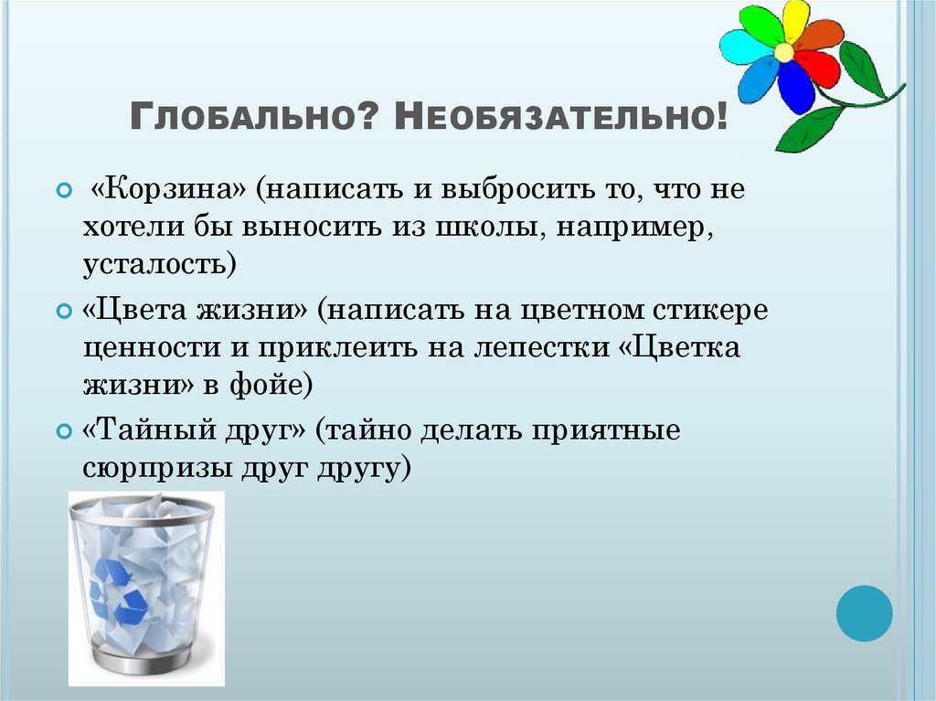 ГЛОБАЛЬНО? НЕОБЯЗАТЕЛЬНО!«Корзина» (написать и выбросить то, что не