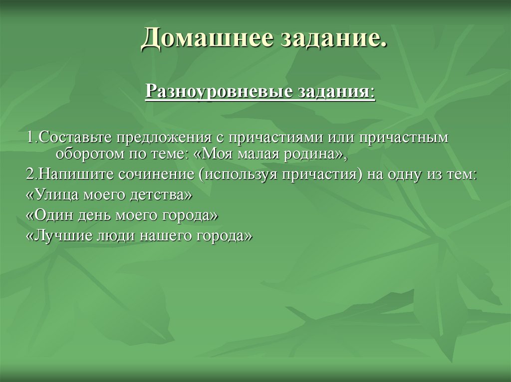 2.Напишите сочинение (используя причастия) на одну из тем:
