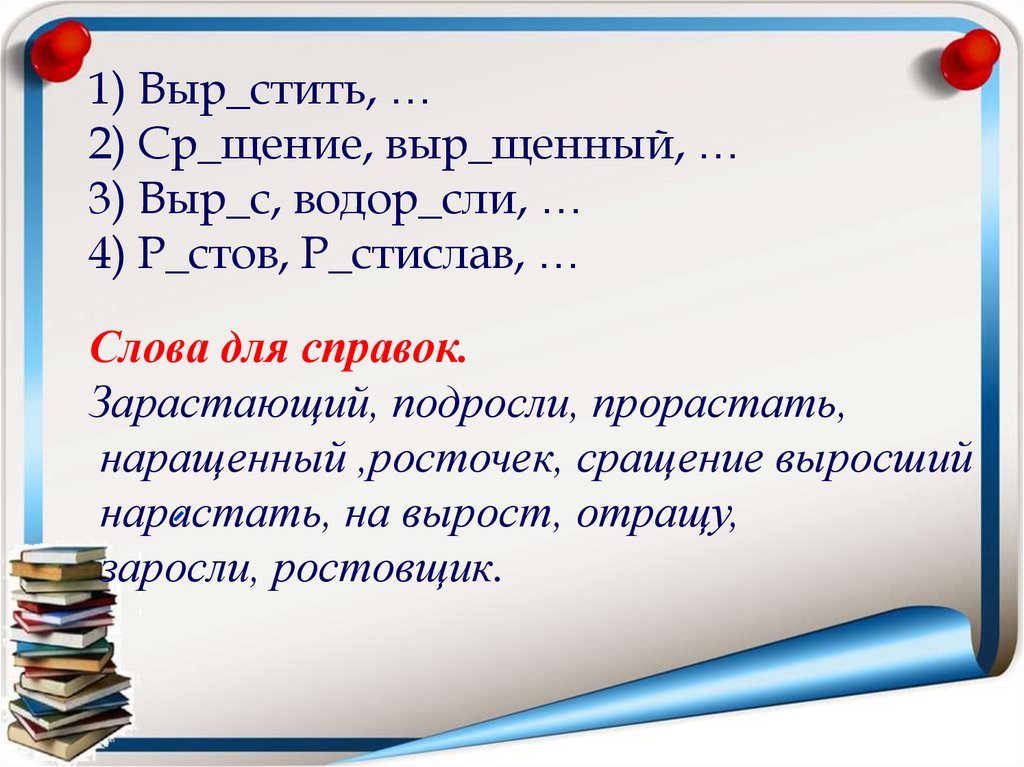 1) Выр_стить, …2) Ср_щение, выр_щенный, …
