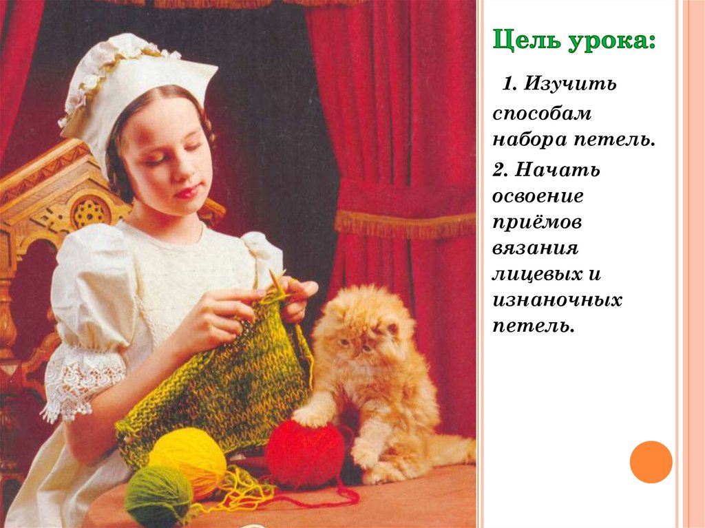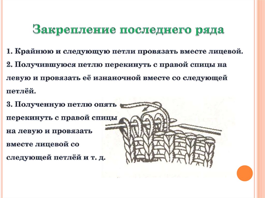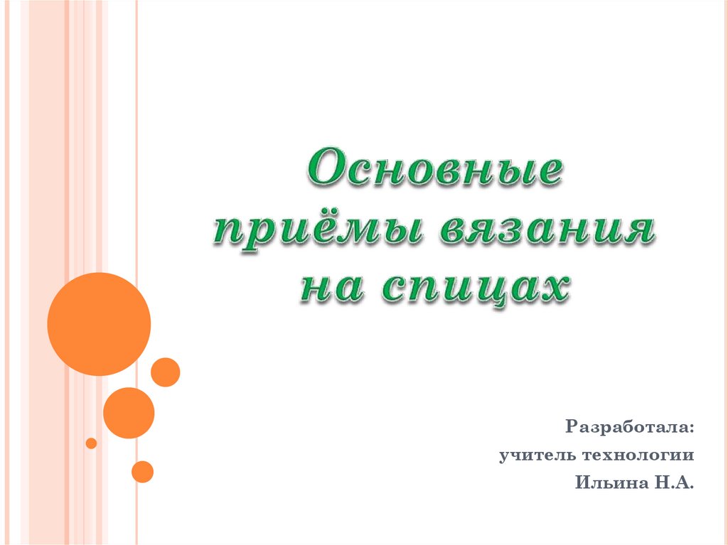 Основные приёмы вязания на спицах. 8 класс