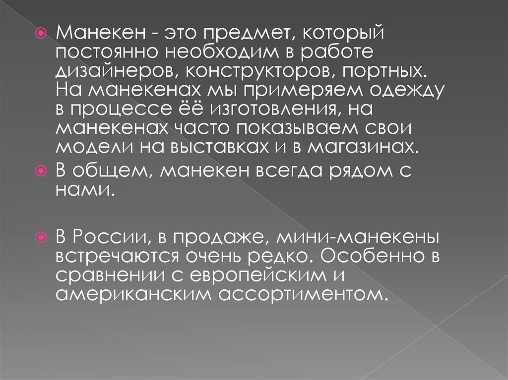 Манекен - это предмет, которыйпостоянно необходим в работе