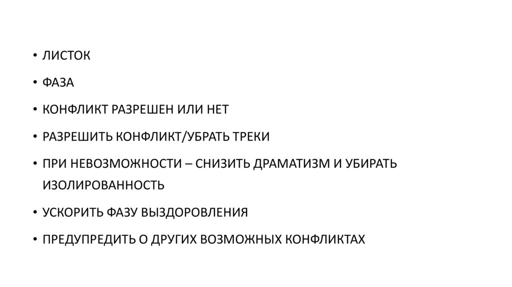 • Предупредить о возможных дальнейших конфликтах при выздоровлении