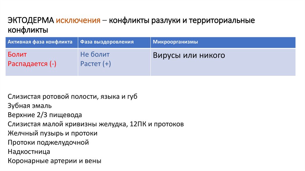 ЭКТОДЕРМА исключения – конфликты разлуки и территориальныеконфликты