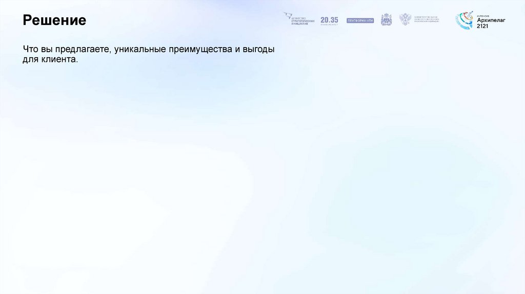 РешениеЧто вы предлагаете, уникальные преимущества и выгоды