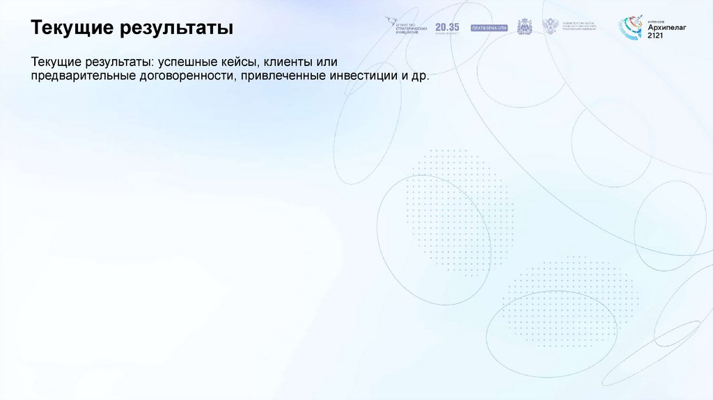 Текущие результатыТекущие результаты: успешные кейсы, клиенты или