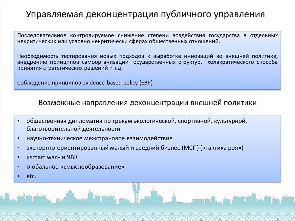 Управляемая деконцентрация публичного управленияПоследовательное контролируемое снижение степени воздействия государства в отдельных