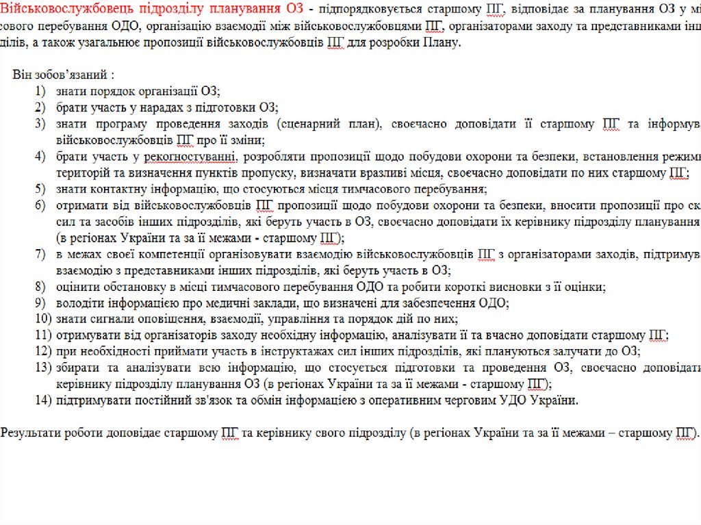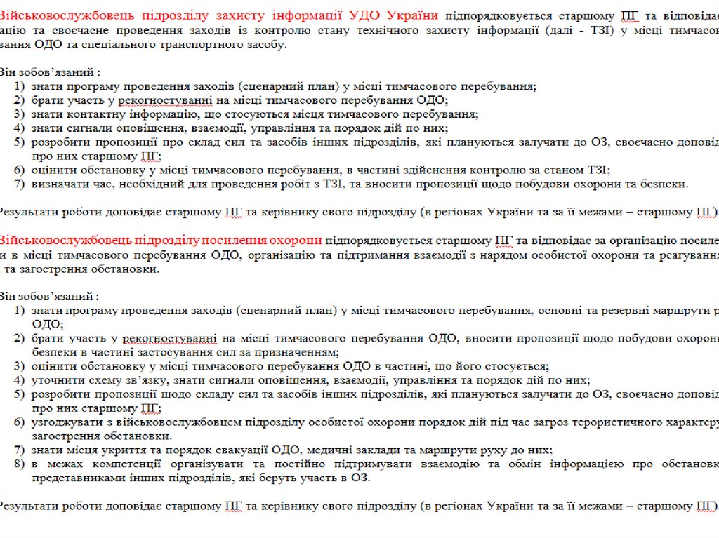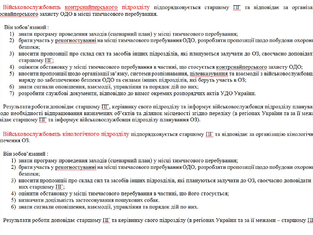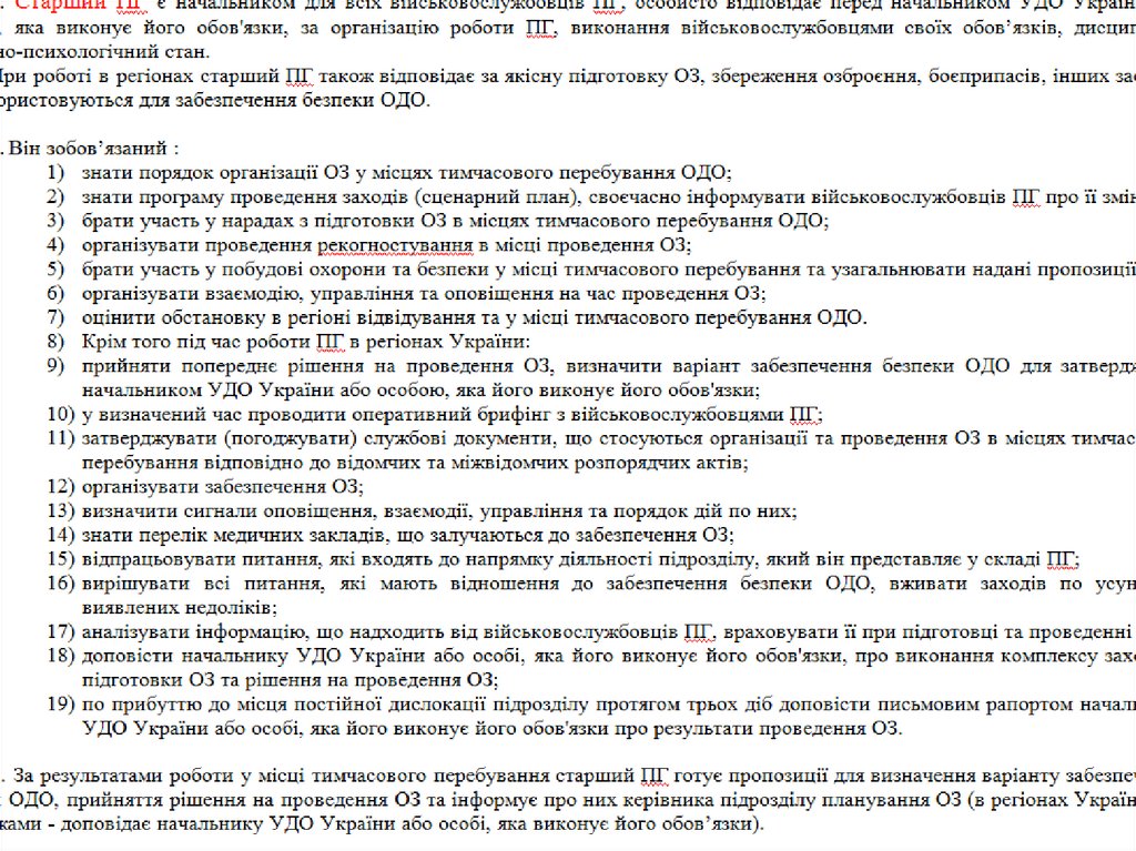 Обов'язки військовослужбовців ПГ УДО України
