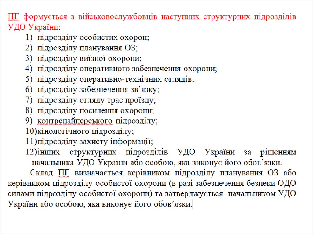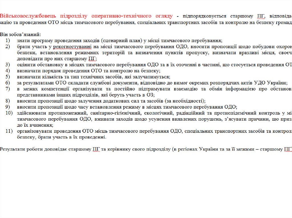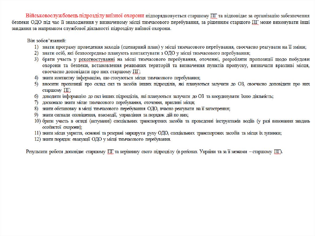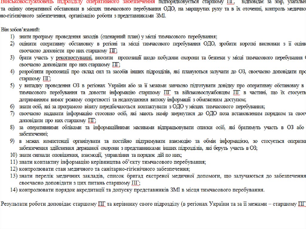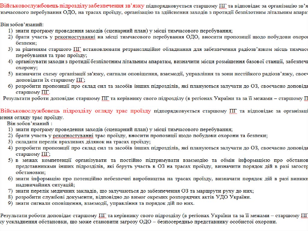 Обов'язки військовослужбовців ПГ УДО України