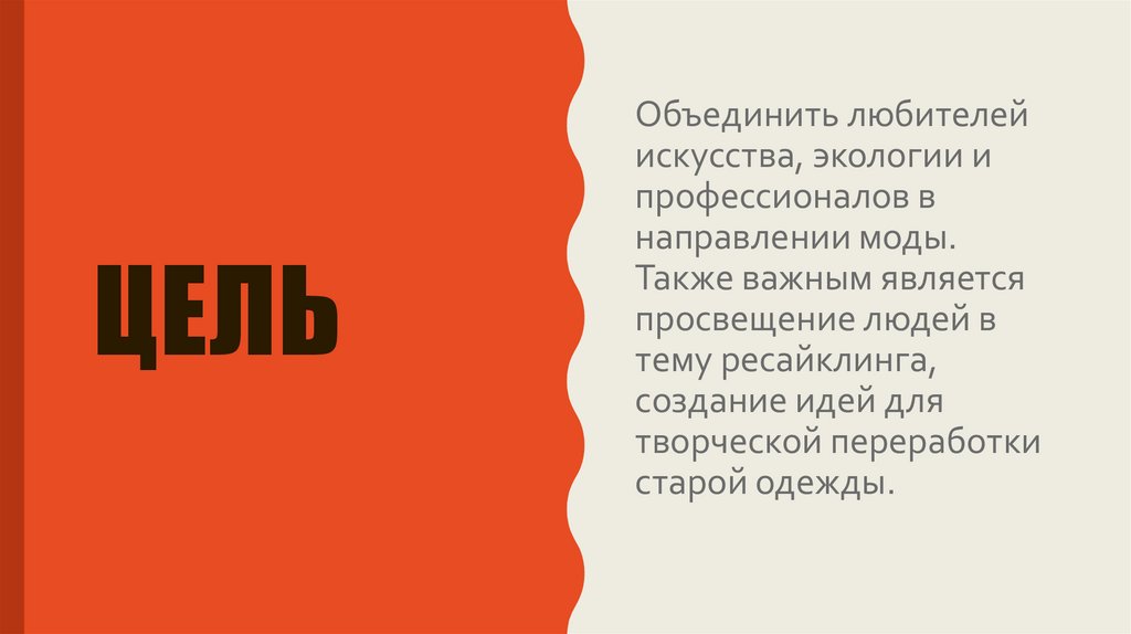 Объединить интересующихся экологией дизайнеров, студентов и простых людей