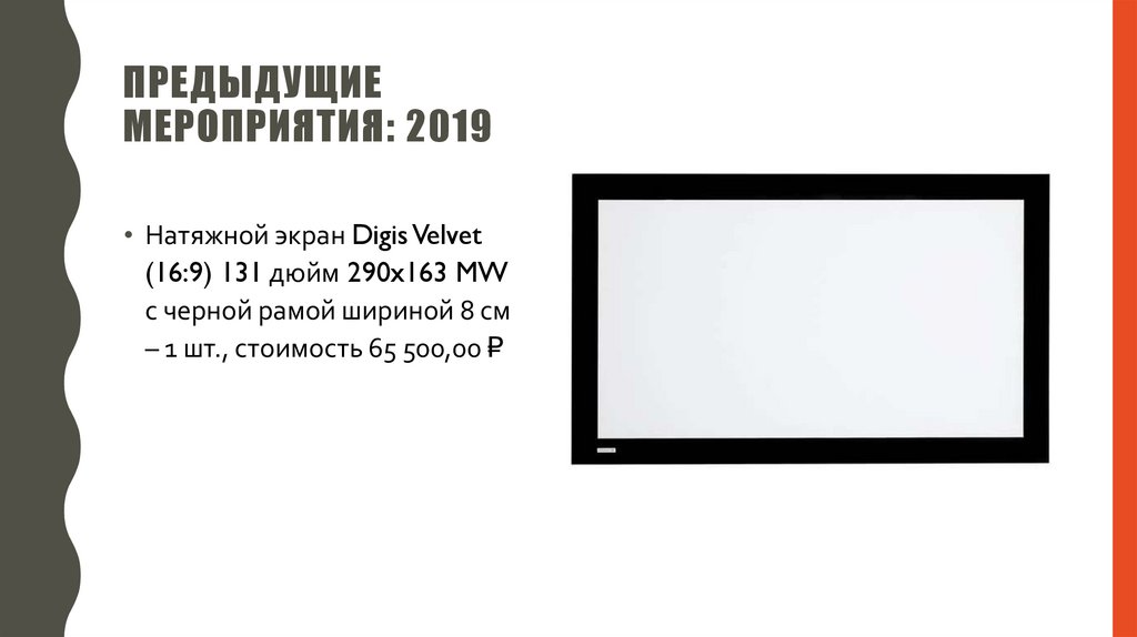 • Натяжной экран Digis Velvet (16:9) 131 дюйм 290x163 MW с черной рамой шириной 8 см