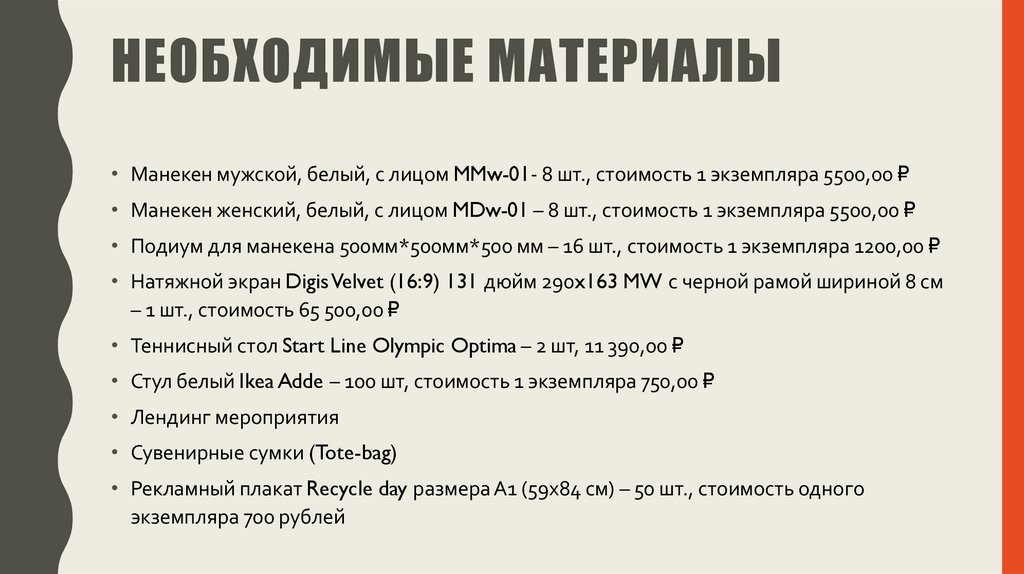 НЕОБХОДИМЫЕ МАТЕРИАЛЫ• Манекен мужской, белый, с лицом MMw-01- 8 шт., стоимость 1 экземпляра 5500,00 ₽