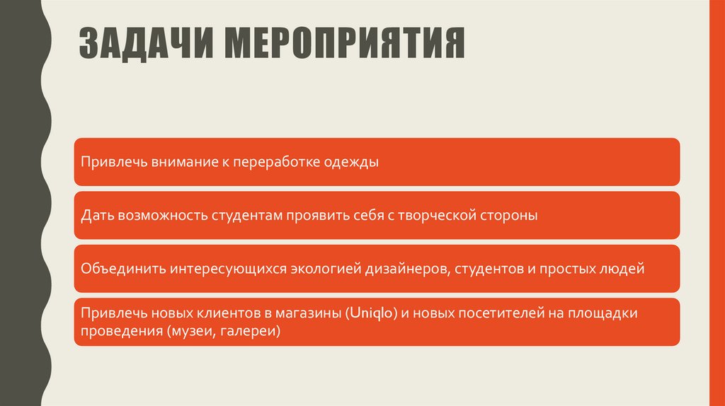 ЗАДАЧИ МЕРОПРИЯТИЯПривлечь внимание к переработке одежды