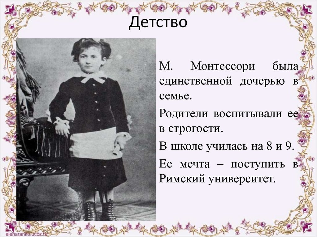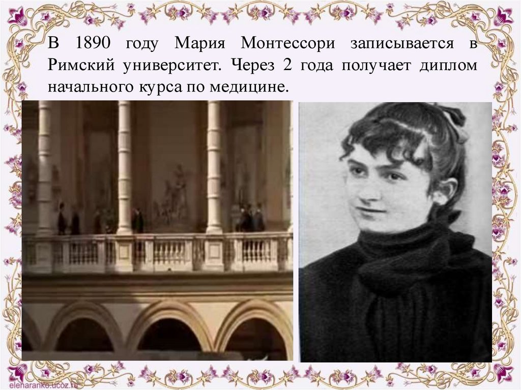 В 1890 году Мария Монтессори записывается вРимский университет. Через 2 года получает диплом