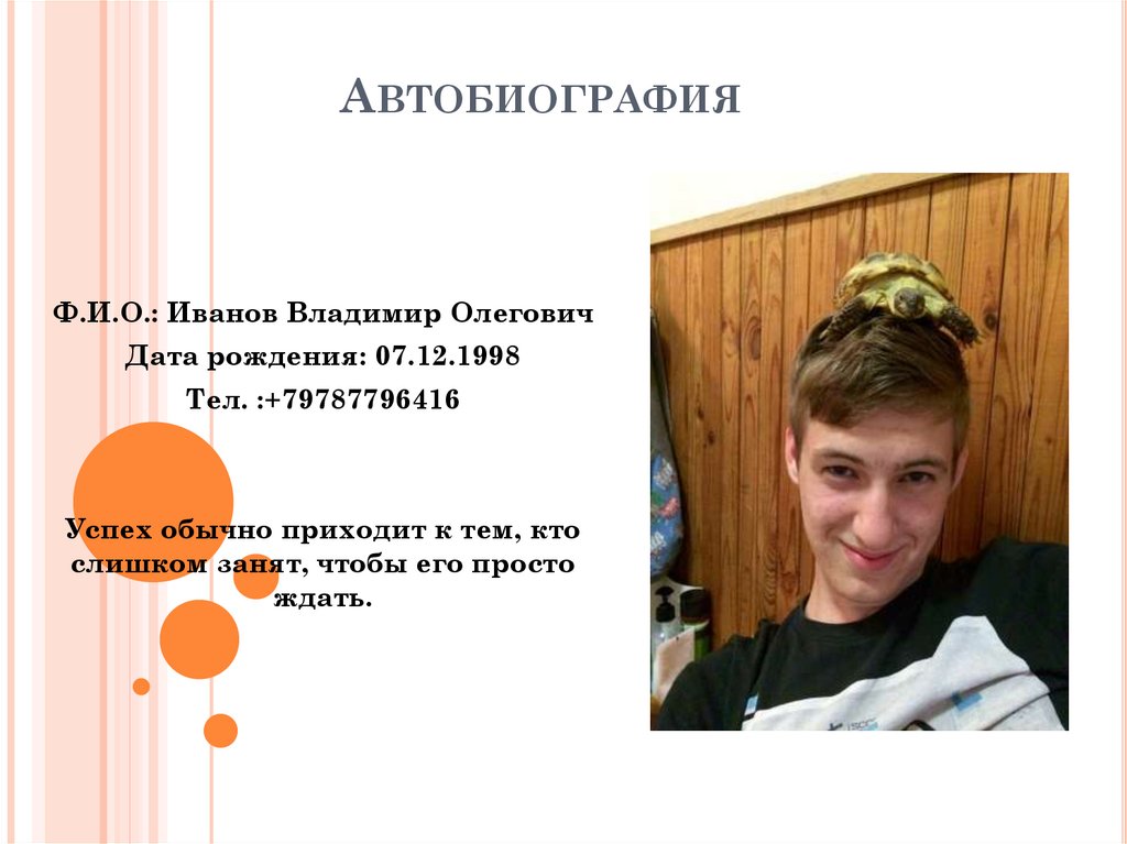 АВТОБИОГРАФИЯФ.И.О.: Иванов Владимир Олегович