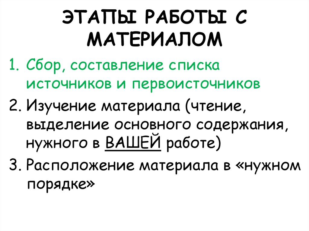 ЭТАПЫ РАБОТЫ СМАТЕРИАЛОМ