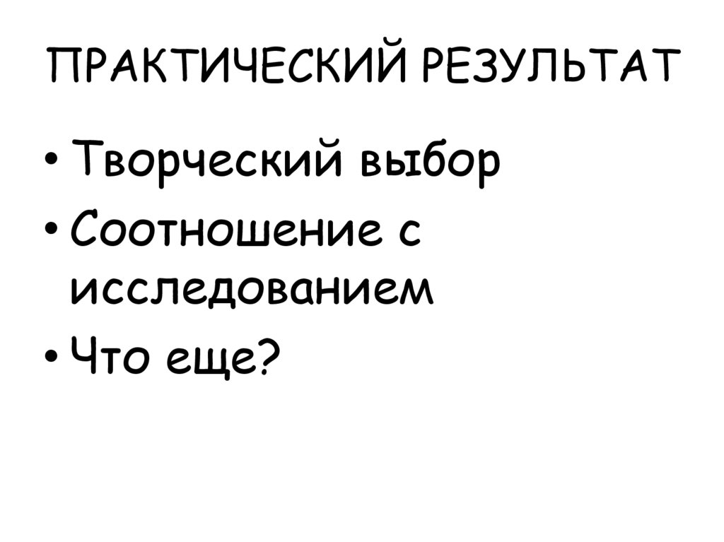 ПРАКТИЧЕСКИЙ РЕЗУЛЬТАТ• Творческий выбор