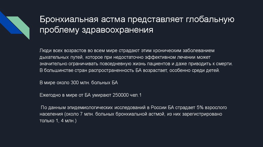 Бронхиальная астма представляет глобальнуюпроблему здравоохранения