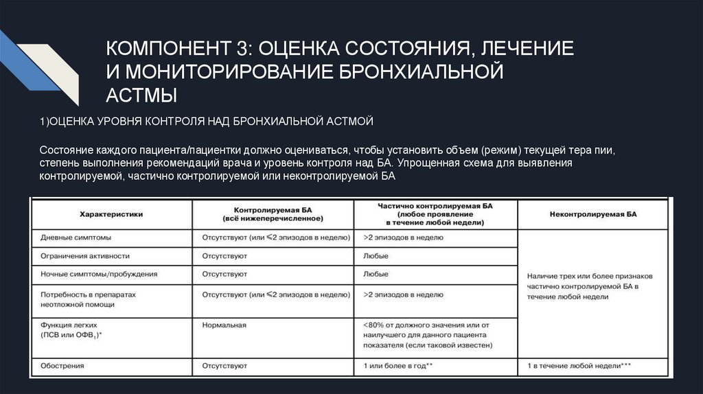 КОМПОНЕНТ 3: ОЦЕНКА СОСТОЯНИЯ, ЛЕЧЕНИЕИ МОНИТОРИРОВАНИЕ БРОНХИАЛЬНОЙ