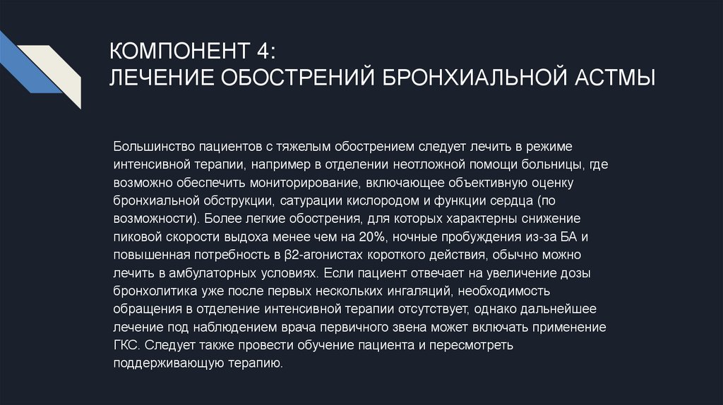 КОМПОНЕНТ 4:ЛЕЧЕНИЕ ОБОСТРЕНИЙ БРОНХИАЛЬНОЙ АСТМЫ