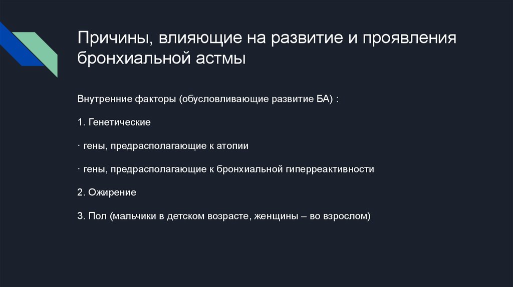 Причины, влияющие на развитие и проявлениябронхиальной астмы
