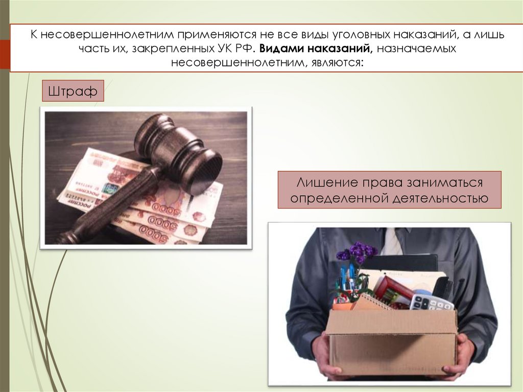 К несовершеннолетним применяются не все виды уголовных наказаний, а лишьчасть их, закрепленных УК РФ. Видами наказаний, назначаемых