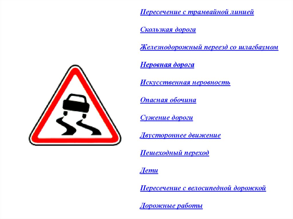 Пересечение с трамвайной линиейСкользкая дорога