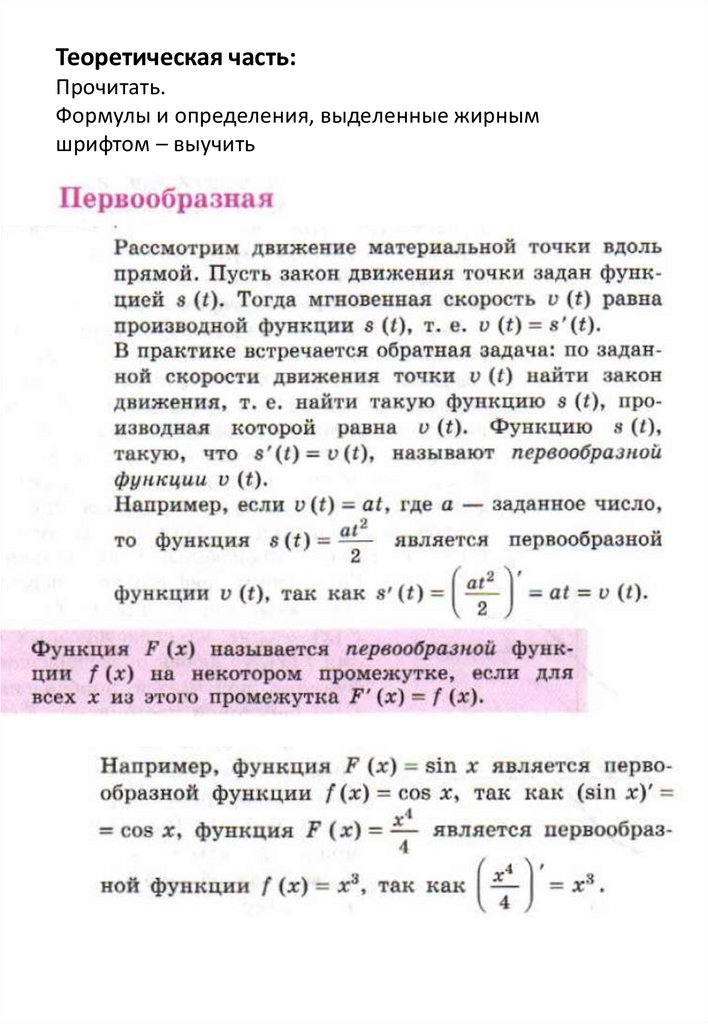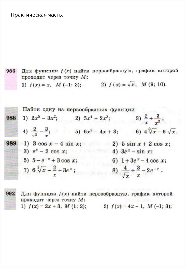 нахождения первообразных элементарных